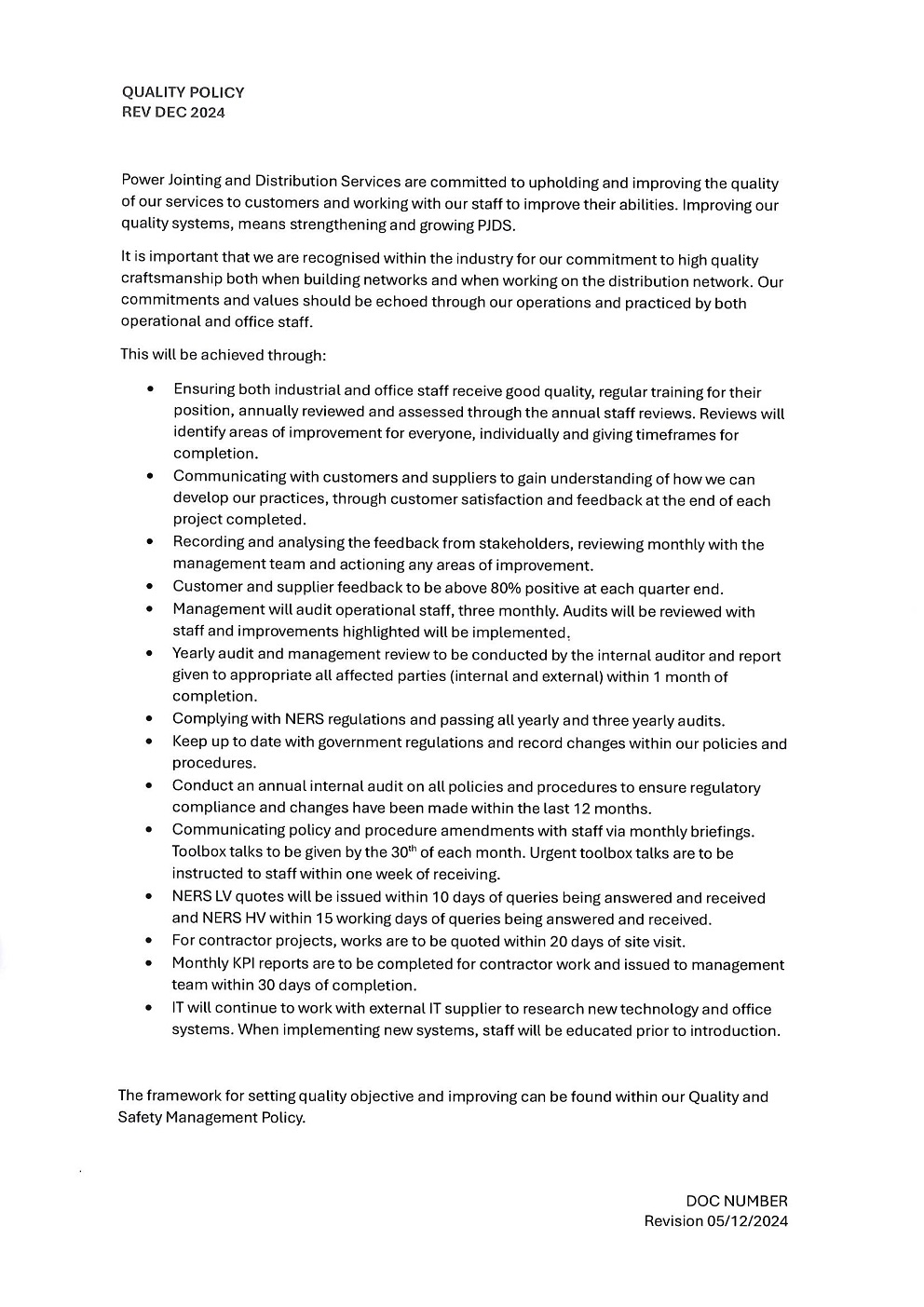 | Power Jointing & Distribution Services Ltd are committed to providing total quality solutions for all our